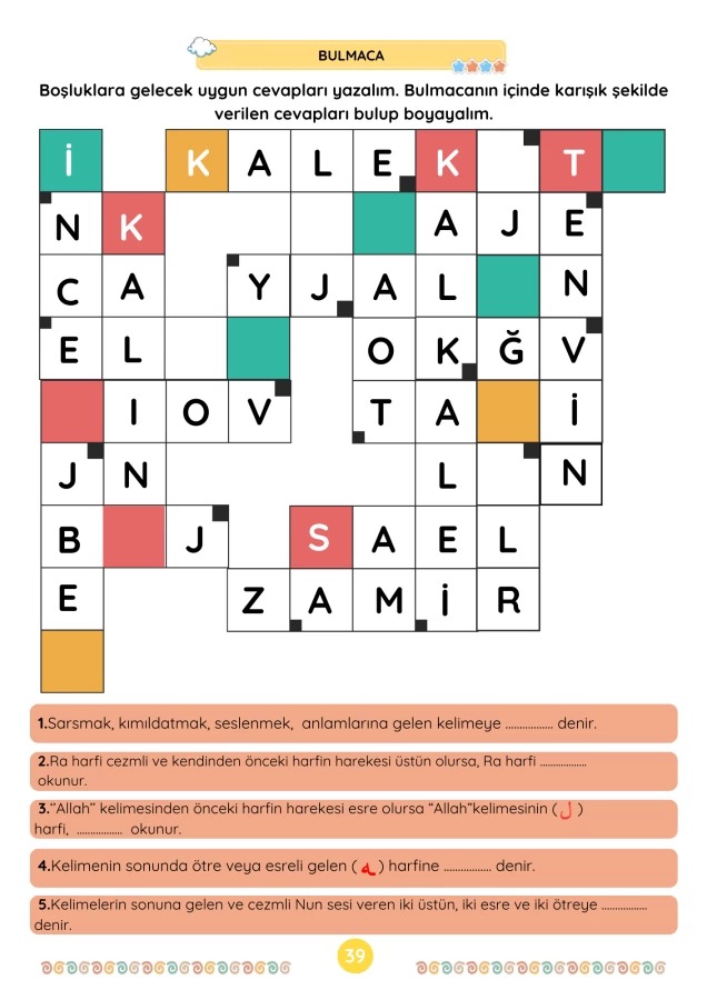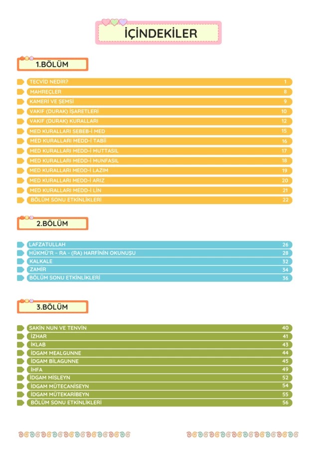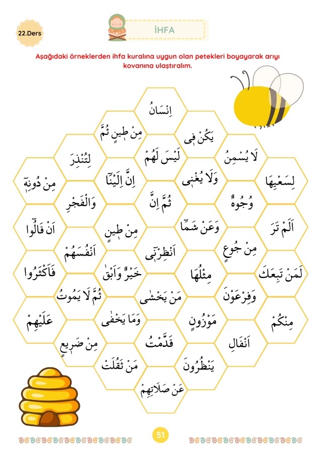 Kitap içerisinde yer alan eğitici oyunlar ve alıştırmalar sayesinde çocuğunuz; Üstün, esre, ötre ve cezm gibi temel Kur'an okuma kurallarını farkında bile olmadan, keyifle öğrenecek.